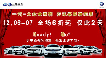 近年来,一汽-大众市场业绩屡创新高,历史总销量预计今年年底突破1000万辆。历时23年成就千万辆规模,依靠的是高品质的产品和强大的体系能力,还有广大客户对一汽-大众品牌的支持和信赖。在2014岁末到来之际,为答谢新老客户,一汽-大众金宝利将于12月6日、7日开仓特卖两天。