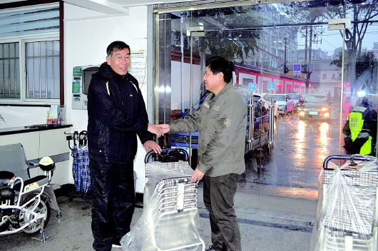 本报讯(记者 许建立 通讯员 杨霄霞) 11月26日下午,后坡街社区残联负责人曹峻源在后坡街居委会为辖区贫困肢体残疾人孙昌华、潘德华和刘红发放了区残联补贴的免费辅助器具(四轮肢体残疾人购物车)。随后,曹峻源将四轮购物车送到了行走不便的六楼残疾人张秀营家中,张阿姨说,这回好了,平时购物方便多了