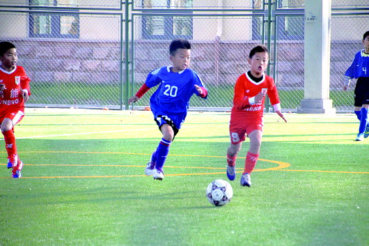 ◥奔跑在绿茵场上的王一帆。