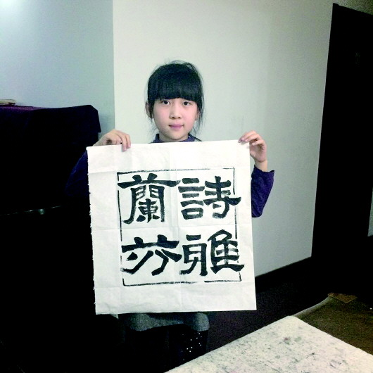 8岁的若溪个子比同龄人高,瘦瘦的。若溪妈妈说,刚开始写字的时候更瘦,拿起毛笔来,笔杆子倒比手腕还要粗一些。“刚开始书法学校的老师对她没大有信心,觉得她太小,一是没有力气,而是很难坚持。”但就是这个瘦弱的小姑娘,一天天让老师从没信心到刮目相看。