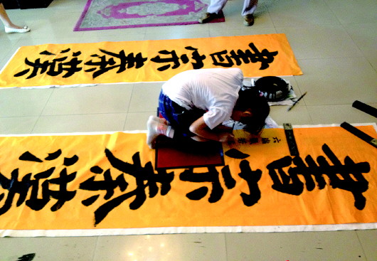 练字不久,若溪就开始陆续参加全省全国的很多书法比赛,并屡屡获奖。“若溪6岁的时候,去北京参加一个书法比赛,当时她写的那幅字长2米多,没有大桌子摆放,组委会就在大厅找了一个宽敞地方,把纸铺开,让她在地上写。”