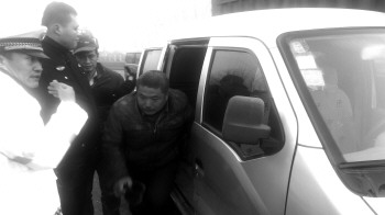 ▲民警让车内乘客依次下车。 本报记者 孟杰 摄