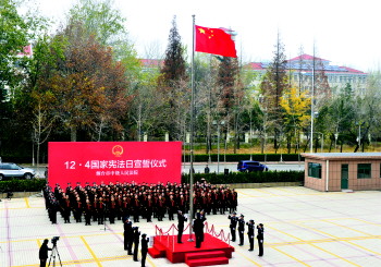 12月4日上午,山东省烟台市中级人民法院举行了隆重的宪法宣誓仪式,200余名法官身着法袍,举起右拳,庄严宣誓,表达捍卫国家宪法尊严,维护社会公平正义的决心。