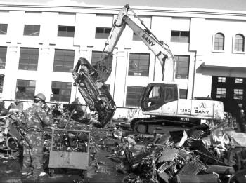 在拆解公司,利用新设备,每三分钟就可以完成一辆黄标车的拆解。 本报记者 李娜 摄