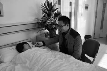 捐献造血干细胞期间,王俊红的老公细心照顾她。