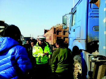 民警对违法大货司机进行处罚。周衍鹏 摄