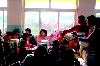 安利志愿者给东港三庄镇惠家下河小学送去微波炉和饭盒