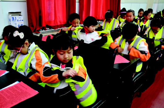4日上午,“荧光童行”爱心反光衣发放仪式在滨城区实验小学举行,千余名学生每人都拿到了一件鲜艳的荧光衣,学生们的平安出行又增加一层保护膜。该活动由市文明办、大众网滨州站等单位共同发起。 本报见习记者 杜雅楠 摄影报道