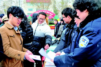 12月4日是我国法制宣传日,也是首个宪法日。当天上午,威海市普法办公室组织部分行政执法单位,在人民广场举行普法宣传活动。山大(威海)法学院10余名大学生,在现场为学生及家长宣传如何利用法律维护自己的权益。