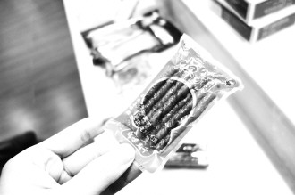 警方展示经侦案件中查获的问题辣条。 本报记者 袁鹏 摄