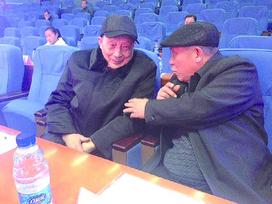 同为寻找抗战历史奔波多年,郑沂家(右)和任世淦一见如故,相谈甚欢。