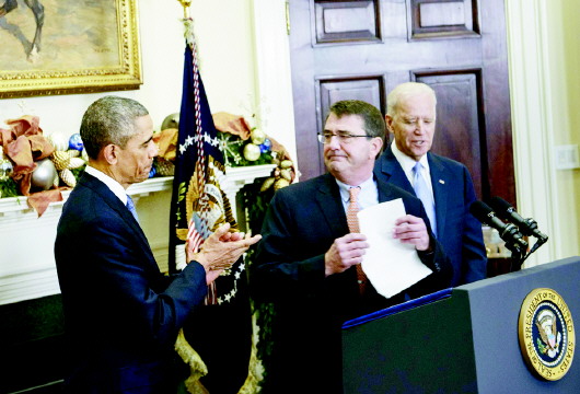12月5日,在美国华盛顿白宫,阿什顿·卡特出席新防长提名会。 新华/美联