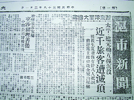 周边的渔民听到海上发出很大的声响,灯都亮起来了,呼喊声回荡在海面上。但是很快,船全部沉入海底,灯也灭了。“海上一片漆黑,对面不见人,即开始最多之生死挣扎,”李述民写道,“风大浪高,十足骇人,沧海孤板,随浪浮沉。”