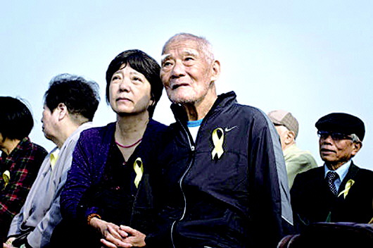2010年,两岸合祭太平轮活动中,生还者叶伦明(中)远眺白节山。