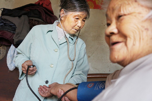 获奖者王晓告诉记者,照片中花白头发的老乡医叫由舜华,是邹平县西董镇上廻村很有名的乡医,虽然已经68岁,但依旧还是踩着崎岖的山路,背着药箱往返于医务室和病人家之间,而今年已经是她当乡村医生的第44个年头了。