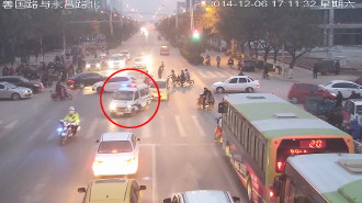从接警到送到医院仅用14分钟,图为警车送医途中。(监控视频截图)