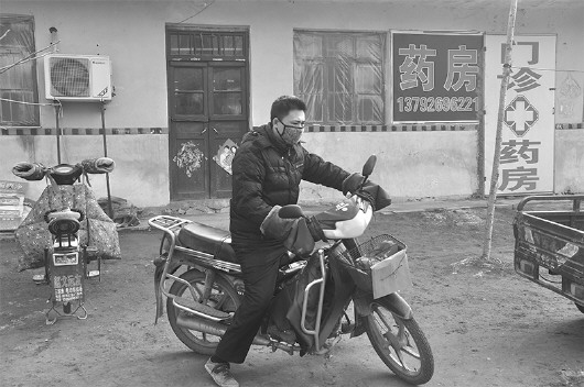 崔友良驾驶摩托车出诊。