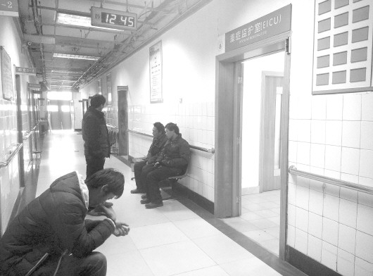 9日,刘治国的家人焦急地守在重症监护室门外。