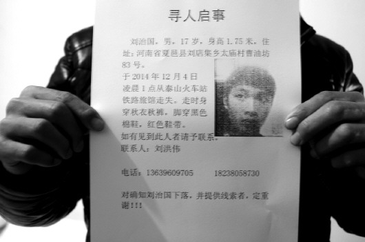 8日,刘艳晴赶到,印了3000张寻人启事。“我们在火车站周边发寻人启事,但一直没线索。”刘艳晴说,他曾到招待所查看监控并偷偷翻录了几段。