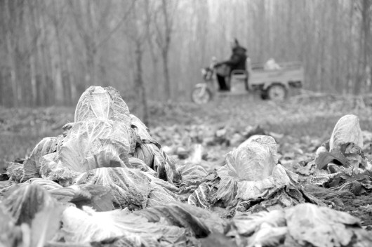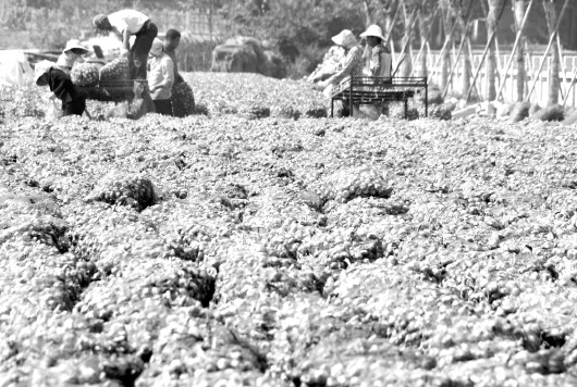 今年白菜价格暴跌,青州市东夏镇白菜的地头价每斤仅一毛,不少白菜烂在地里。 本报记者 孙国祥 摄