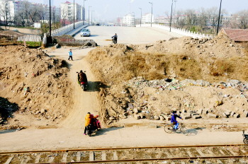 近日,由于商贸大道地道桥封闭施工,建成但未能开通的三八路运河桥成为市民的捷径,虽然几经封堵,但总会很快被开辟出新的通行路径。 本报记者 马志勇 摄
