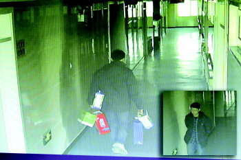 小图:嫌疑人在病房外徘徊时被拍下真容。