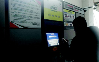 8日,在崂山区淘金花园小区,居民刘先生正从“速递易”中取快递。记者看到,“速递易”外形与超市的储物柜相似,有各种不同大小的储物格,中间则是一台类似于ATM机的设备。刘先生在设备屏幕上随意点击了一下,弹出一个输入界面,输入密码后,储物格就自动打开了。