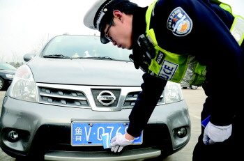 黄岛高速交警查获的遮挡、伪造车牌的违法车。 潘旭业 摄