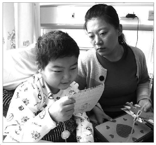 “我会好好养病,早日回去上学,回去找你们玩。”张钵洋看到同学为他制作的祝福卡后,脸上露出了久违的笑容。