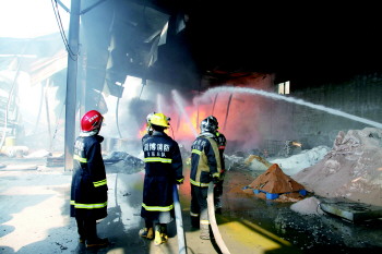 消防官兵扑救起火厂房(资料片)。 本报记者 王鸿哲 摄