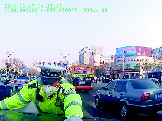 当时执勤的一位魏姓民警介绍,7日下午2点30分左右,他和几位同事在聊城市人民医院岗执勤时,在路口发现一辆自西向东的越野车有套牌嫌疑,立即上前进行查纠。当他们走到车前方的时候,越野车突然向后倒车,企图转弯逃走。
