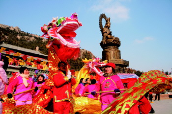 民俗活动:主要举办新春祈福法会、胶东民俗体验、十二生肖许愿、万民联欢游园、传统美食汇展等五大主题活动,包括新年第一福钟、美食一条街、吴桥杂技、民俗演出广场、嘉年华游乐场、群众大舞台等活动。