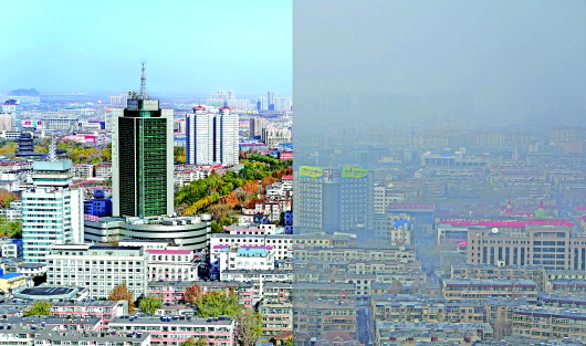 入冬以来,雾霾天气已然成为人们生活中的“常客”,蓝天白云更多地成为一种惊喜和奢望。记者将12月1日和10日同样摄于大众传媒大厦楼顶的两张图片拼接在一起,1日的晴朗天和10日的雾霾天泾渭分明。 本报记者 陈文进 王晓 摄影报道
