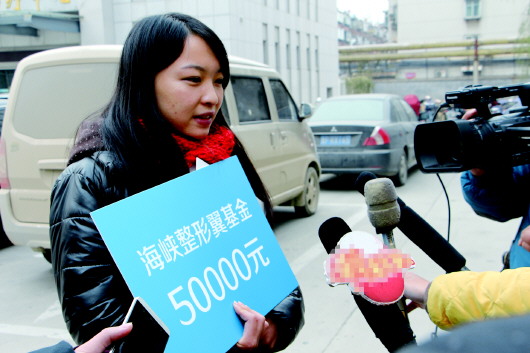 海峡美容整形医院为“地瓜妹”捐款现场。