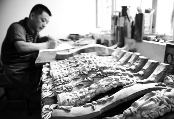 未完工的楷木雕花纹格外漂亮(资料图)。本报记者 李岩松 摄