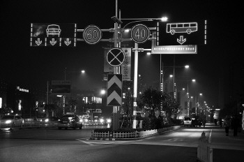 9日晚8点,在金宇路与建设路交会处的一发光指示标志已发出光亮。路口东西两侧机动车与非机动车分隔处,栏杆上悬挂着标有“60”的的限速标志,图标轮廓散发着光亮,像是无数细小的灯泡的组合。这种发光的交通标志增加了辨识度,尤其是在夜间格外显眼。此外,在4个路口的拐弯处,地面上还安装了发光道钉,红、黄、蓝色的彩灯不停地闪烁,将公交车专用道和人行道明显分隔。不少市民看到这条有彩色闪灯形成的分隔带,都会自觉地各就其位,按照指示的行车道行驶。