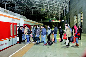 10日17:45分,聊城至济南的列车重新开通,当日19:31分将到达济南。这是在聊城至济南列车暂停三年半之后,重新发出的第一趟列车,175名乘客成为这趟列车的幸运乘客,有不少市民甚至专门购票体验。聊城每天有六趟火车直达济南,而济南至聊城每天则有七趟列车。图为旅客持票上车。 本报记者 杨淑君 通讯员 祖世华 摄