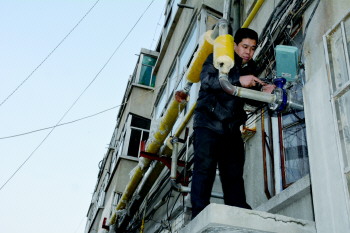 据市热力公司市中片区值长于秀勇介绍,电影公司家属院共一栋楼3个单元24户居民,面积约1800平方米,由于一直没有集中供暖配套设施,楼体较老,面积较小,不具备建站条件,多年来一直未实现集中供暖。但是该家属院的24户业主越来越期望可以享受到集中供暖。2014年,市热力公司的技术人员曾多次到该家属院实地勘察,经过多方协调,市热力公司投资30万元,重新敷设了连接换热站的一网,以及对楼内的二网提供了技术支持,在中原输气公司换热站接入,为了不影响供热质量,更换了换热站的一个换热器,保障供暖质量达标。