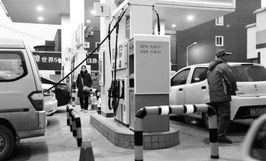 12月11日晚,车辆正在加油。 本报记者 郭建政 摄
