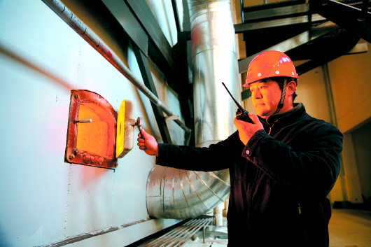魏树良正在巡检锅炉运行情况。