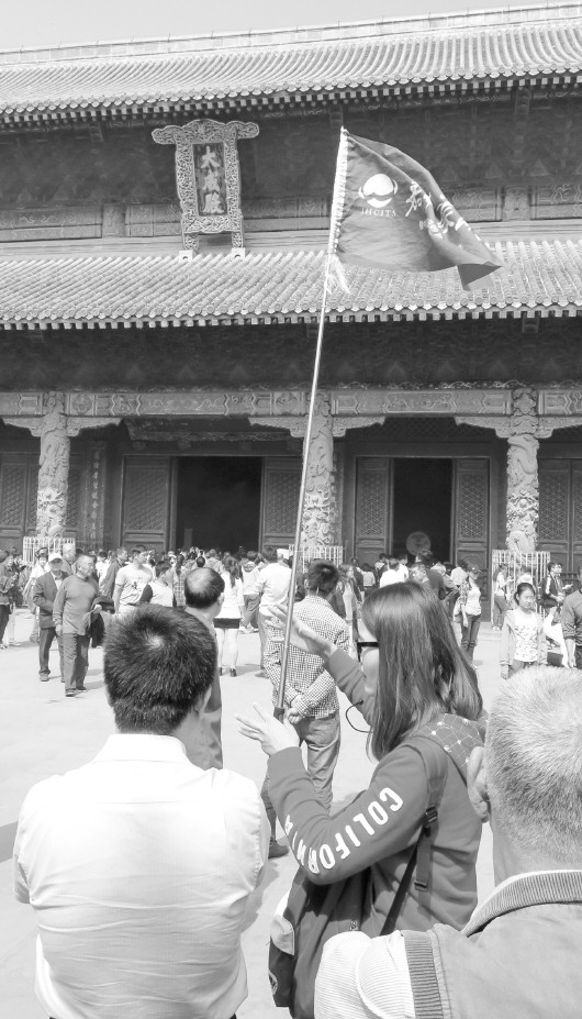 十一期间,组团游客在曲阜孔庙游览。散客渐多,团队游客下跌明显。(资料片)