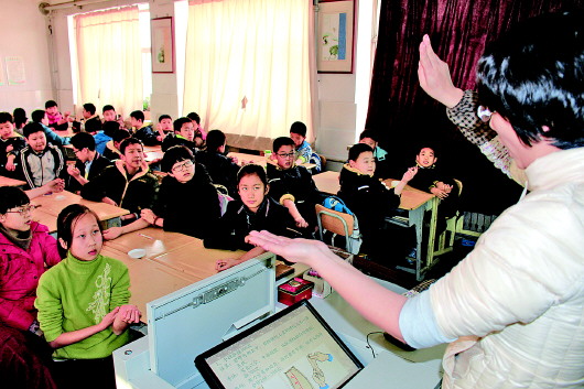 12月11日下午,在济南市历下实验小学六年级3班教室,一堂别开生面的课正在进行。讲台的多媒体屏幕上打出《中医——发热推拿疗法》,原来这是一节中医课,台下坐满了学生,主讲人吕梦老师正在给他们演示手指推摸和开天门的手法。