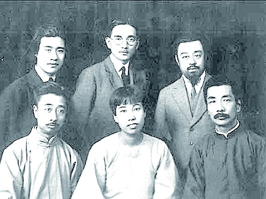 前排左起:周建人、许广平、鲁迅;后排左起:孙福熙、林语堂、孙伏园