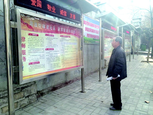 “你看我们这块宣传栏,就立在公交车站,居民等车的时候可以顺便看一看。这一块就立在社区健身器械旁边,茶余饭后休闲健身的时候,看一看也很方便。”石杰伟指着路边的宣传栏告诉记者,这些宣传栏中,宣传的法制知识都是跟百姓生活息息相关的,所以百姓愿意看。