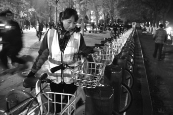 公共自行车巡检员正在维护站点车辆。(资料图) 本报记者 张晓科 摄