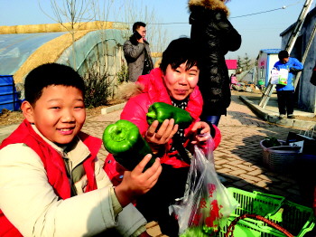 “我还要给我的好朋友带些回去看看,让他也看看这么大的彩色椒。明珠小学的小记者王一鸣说。