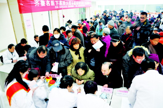 13日上午,由本报联合省卫生厅、各市卫生局、省内部分知名综合(专科)医院等医疗机构共同发起的“齐鲁名医下基层大型公益巡诊活动”滨州站在滨州圣玛佳宝医院举办,22位名专家与患者面对面交流。义诊现场异常火爆,数千市民“包围”名医问健康,一拨拨远道而来的问诊患者满意而归。 本报记者 孙秀峰 摄