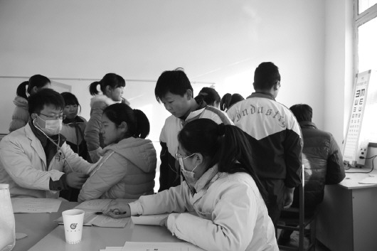 近日,惠民县卫生部门的技术人员在李庄镇曲张小学为学生进行免费健康查体。为全面了解学生发育、健康和营养状况,预防学校传染病的发生和流行,李庄镇从11月21日开始利用1个多月的时间对镇内3875名中小学生进行免费健康查体。