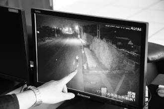 ▲监控视频显示,一男子带着3只羊经过。 记者 王震 摄