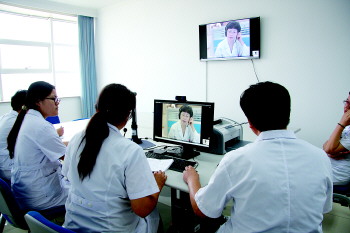 齐鲁医院总院专家为日照分院患者进行远程会诊。